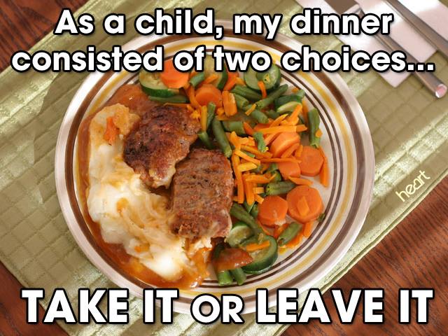 GRANNY: I’M NOT RUNNING A RESTAURANT HERE. SUPPER’S AT SIX. IF YOU’RE HERE YOU EAT,I F YOU’RE NOT YOU DON’T.