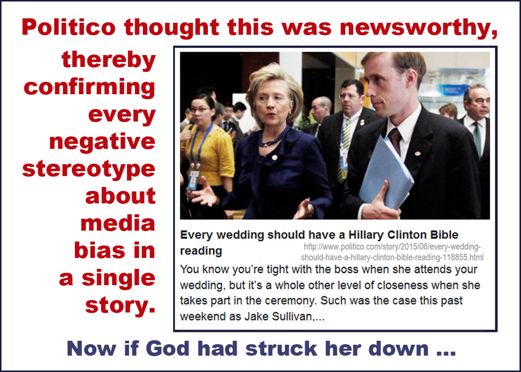 “So, Christianity is evil and worthy of ridicule until the Hildabeast uses it to prop up her Presidential ambitions, at which point it’s swoon-worthy?”