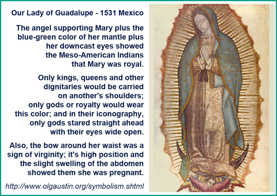 OLOG never ceases to amaze me as to the symbolism present in just one image. The moon beneath her feet (from Revelations) indicated to the Aztecs that the their deities were beneath her, and beneath HER God. It says something else about the arab moon-god, Allah, does it not?
