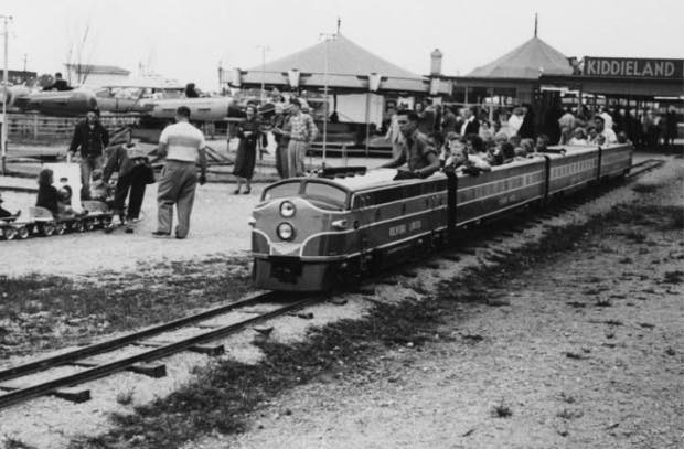 THERE WAS AN AMUSEMENT PARK CALLED KIDDIELAND. EVERY TIME A KID WENT BY IT THE WHINING WOULD START. I THINK WE WENT TWICE OUR WHOLE ADOLESCENT LIVES. IT HAD A TRAIN, A ROLLER COASTER CALLED ‘THE LITTLE DIPPER’, A PONY RING AND BOATS THAT WENT AROUND IN A RING OF WATER. IT WAS MAGICAL.