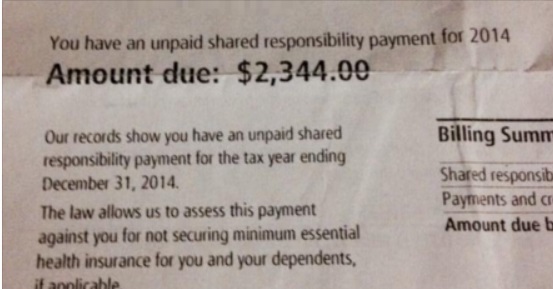 2. Only $2344.00 for not being able to afford insurance? Sounds like a bargain. That top line should read: “You have an unpaid shared responsibility payment for 2014, COMRADE.”