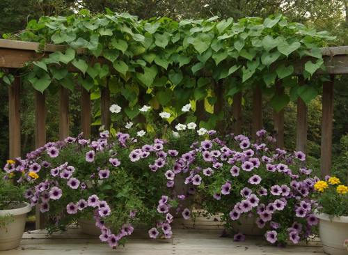 The deck on the south side of the house is where I put things that like a lot of sunshine. The petunias certainly liked it there.