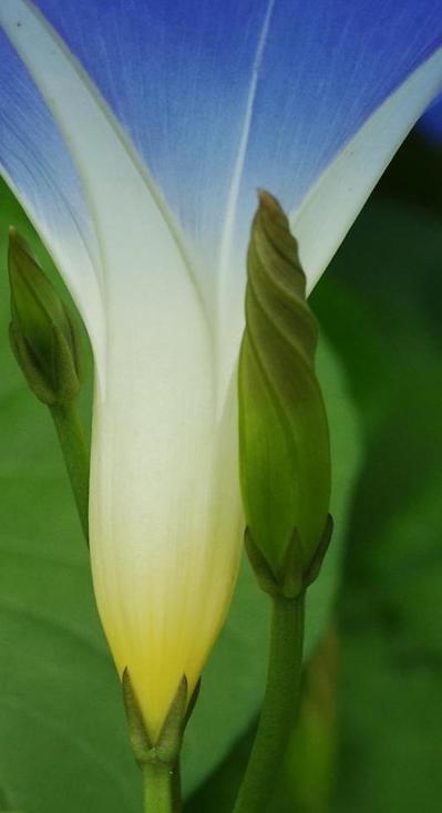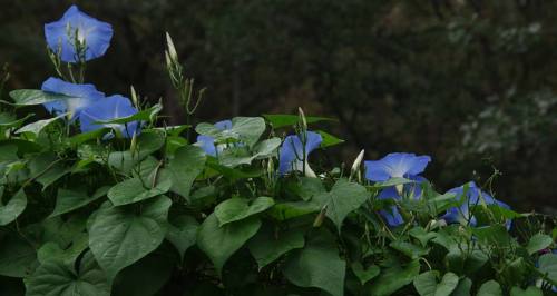 Here’s a kind of artsy photograph my husband took of a couple of my morning glories.