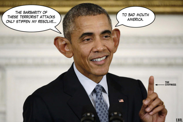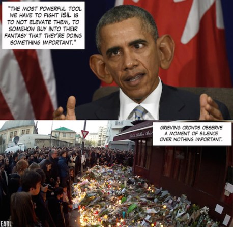 Once upon a time, long, long ago, we had a president who actually cared about the welfare of this countries’ citizens. He did not seek to make friends with the enemy, nor try to understand why they wanted to harm us. He just knew that to win a war you kill people and break things. Our culture has now become infested with the disease of political correctness. Say what you will about Nixon, Ford, GHW Bush, Clinton (sort of), and W. None of them showed such brazen contempt for Americans. Obama sees his real enemy as whites, republicans, and Christians. He equates the holy crusades from 1200 years ago with the barbarity of the killers he just can’t bring himself to hate. Then he tells Christians to “get off their high horse.” He tried to talk tough yesterday, saying we would kill their leaders and ‘contain’ ISIS. How do you contain them? You don’t. He prefers to pick on soft targets like straight Christian males and phony climate change, which can never be proven. It is a bizarro world, indeed, when the dictator of Russia can rally Americans when our president refuses to.