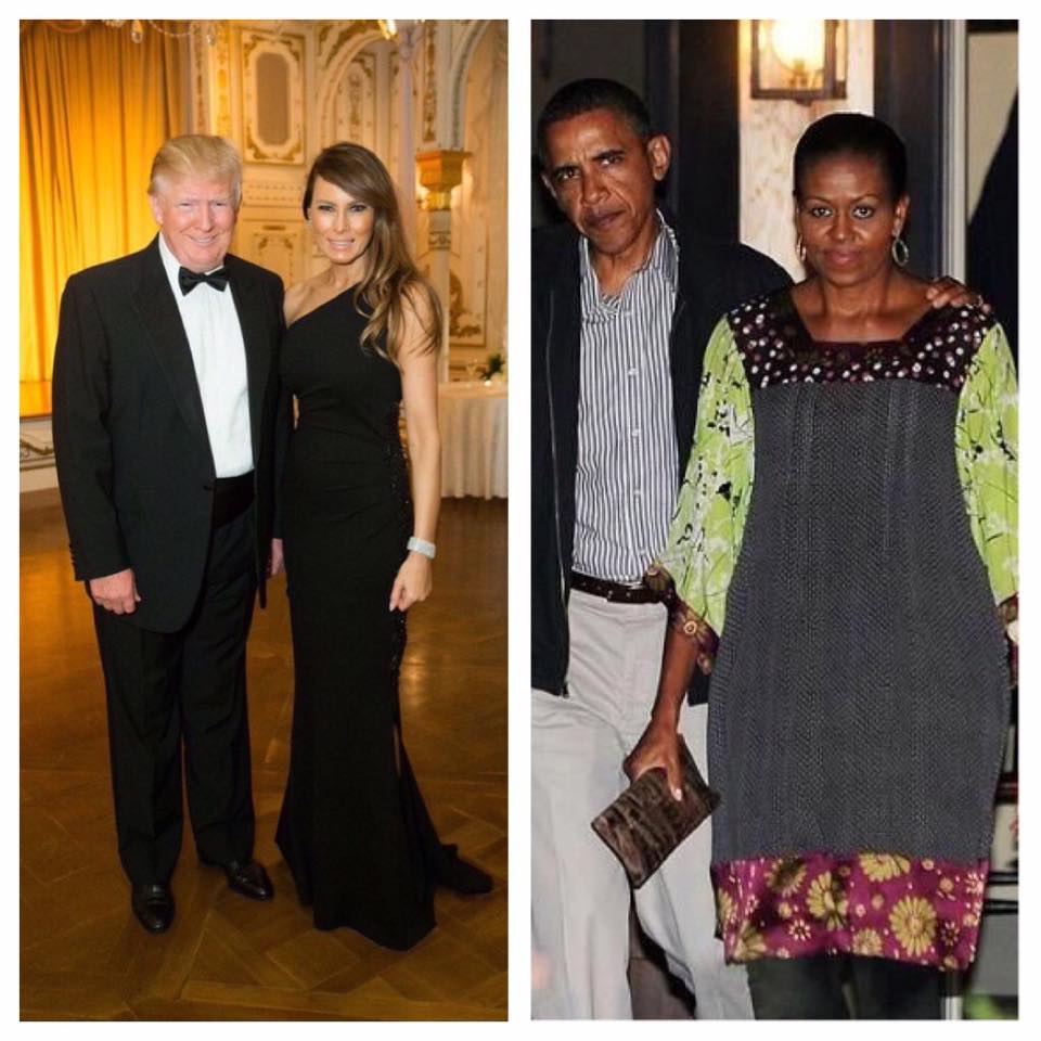 [CtH: Actually, the real difference is that Trump made his dough creating jobs, while Obama became a multi-millionaire largely due to sale of his autobiography that he probably didn’t write. I’m fairly certain the taxpayers never had to pay for Michelle’s wardrobe. That’s probably not true of her staff’s salaries and benefits, which include a hairdresser and makeup artist. But the clothes themselves, no.]