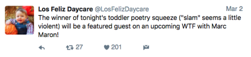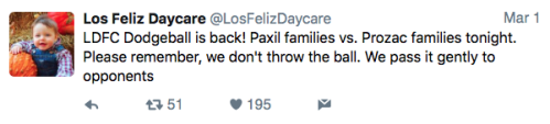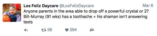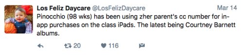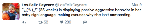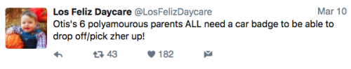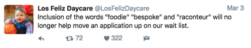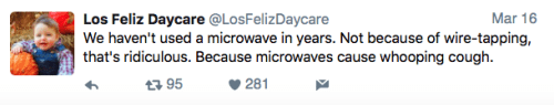 Los Feliz Daycare (motto: “We do not accept immunized children”) is an ultra-progressive child care center in an unspecified affluent neighborhood on the left coast. Some recent tweets: