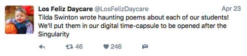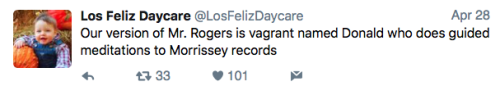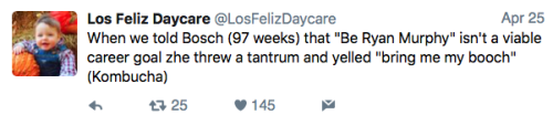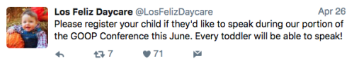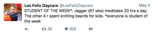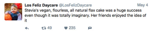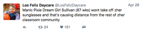 Los Feliz Daycare (motto: “We do not accept immunized children”) is an ultra-progressive child care center in an unspecified affluent neighborhood on the left coast. Some recent tweets: