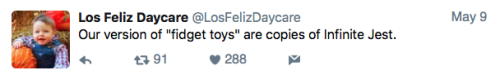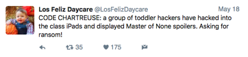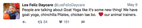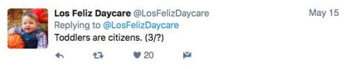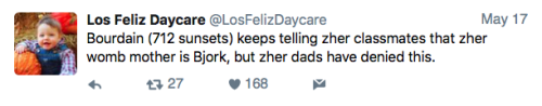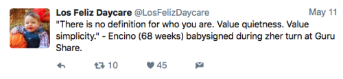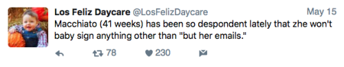 Los Feliz Daycare (motto: “We do not accept immunized children”) is an ultra-progressive child care center in an unspecified affluent neighborhood on the left coast. Some recent tweets: