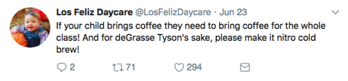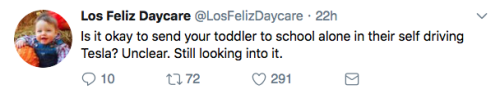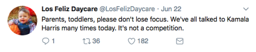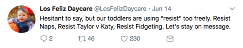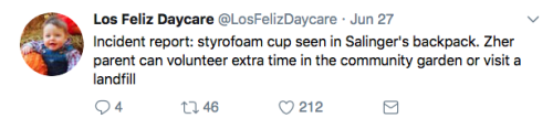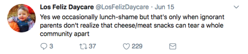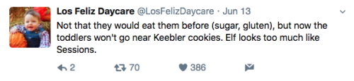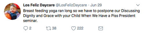 Los Feliz Daycare (motto: “We do not accept immunized children”) is an ultra-progressive child care center in an unspecified affluent neighborhood on the left coast. Some recent tweets: