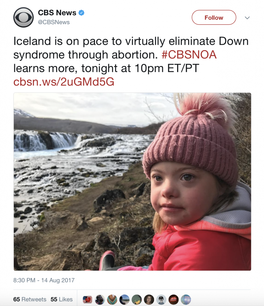 The network tweeted, “Iceland is on pace to virtually eliminate Down syndrome through abortion.”