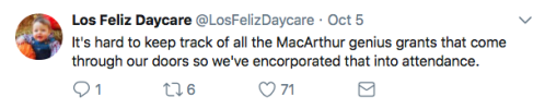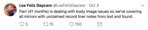Los Feliz Daycare (motto: “We do not accept immunized children”) is an ultra-progressive child care center in an unspecified affluent neighborhood on the left coast. Some recent tweets: