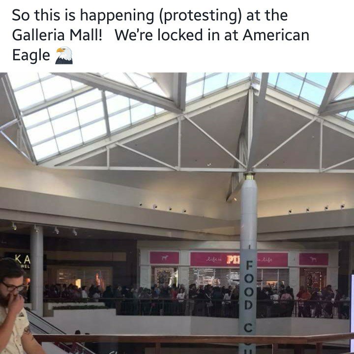 Black lives matter protest locks down stores at Galleria Mall in #RichmondHeights #Missouri today, yelling “white silence is violence”.