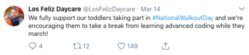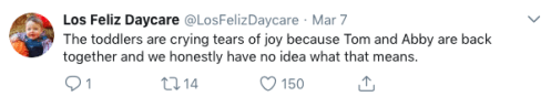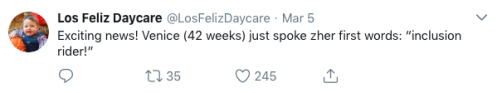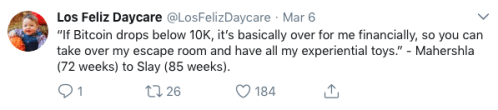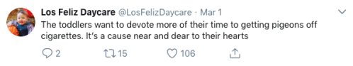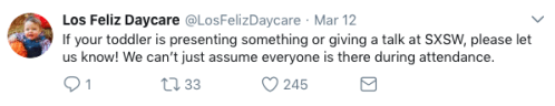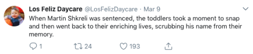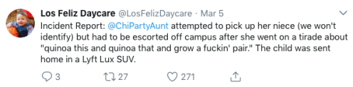 Los Feliz Daycare (motto: “We do not accept immunized children”) is an ultra-progressive child care center in an unspecified affluent neighborhood on the left coast. Some recent tweets: