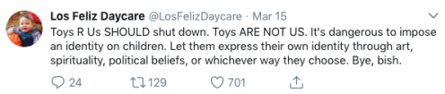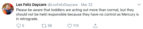 Los Feliz Daycare (motto: “We do not accept immunized children”) is an ultra-progressive child care center in an unspecified affluent neighborhood on the left coast. Some recent tweets: