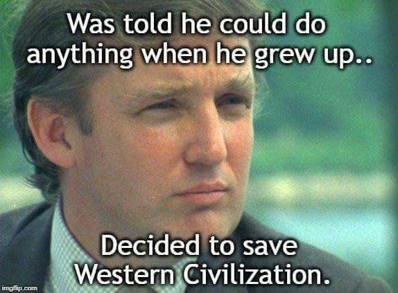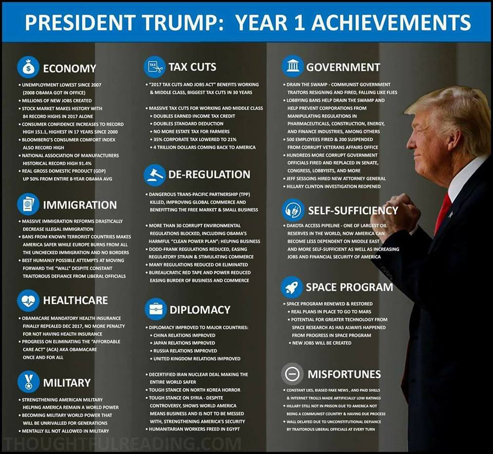 How about stopping the flood of illegals running across the borders? Attorneys General who would be indicted if there were any fairness in our judicial system? How about unemployment under 4 %? Or the possibility that the decades long crisis on the Korean peninsula may be finally be resolved thanks, in large part to the efforts of this president? That he left the lifestyle of a billionaire to be insulted and humiliated and suffer non-stop, ruthless attacks from half the nation just because he won an election?
