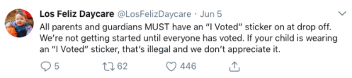 Los Feliz Daycare (motto: “We do not accept immunized children”) is an ultra-progressive child care center in an unspecified affluent neighborhood on the left coast. Some recent tweets: