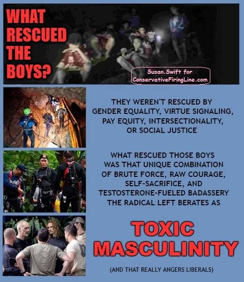 While the left spends its time screaming about separating illegal children from their illegal parents and protesting every time the president burps, people with strength and courage undertook the Herculean task of rescuing 12 Thai boys and their coach who were trapped in an underground cave. If they hadn’t rescued them in time the monsoons would surely have doomed them.