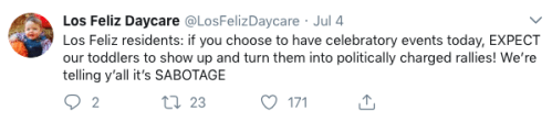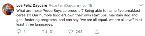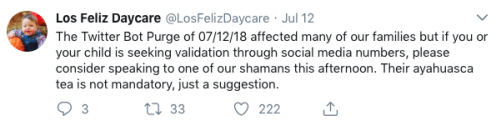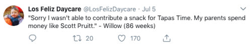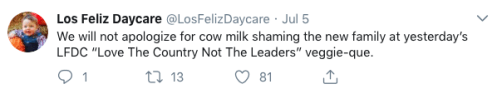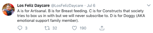 Los Feliz Daycare (motto: “We do not accept immunized children”) is an ultra-progressive child care center in an unspecified affluent neighborhood on the left coast. Some recent tweets: