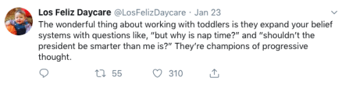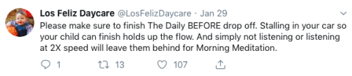 Los Feliz Daycare (motto: “We do not accept immunized children”) is an ultra-progressive child care center in an unspecified affluent neighborhood on the left coast. Some recent tweets: