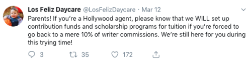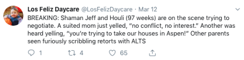 Los Feliz Daycare (motto: “We do not accept immunized children”) is an ultra-progressive child care center in an unspecified affluent neighborhood on the left coast. Some recent tweets: