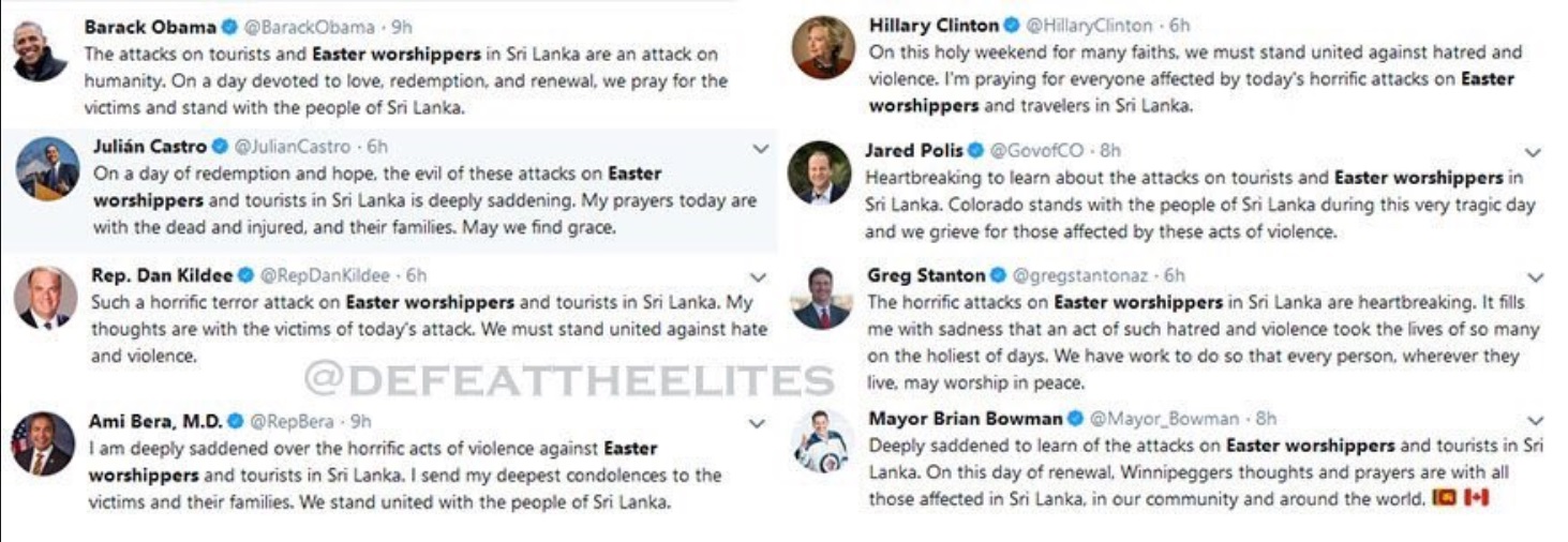 After hundreds were killed in attacks on six Christian churches and two hotels in Sri Lanka, the American Left’s messages were all about “Easter worshippers and tourists” and “violence of all kinds.”