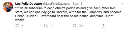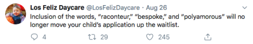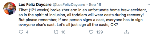 Los Feliz Daycare (motto: “We do not accept immunized children”) is an ultra-progressive child care center in an unspecified affluent neighborhood on the left coast. Some recent tweets: