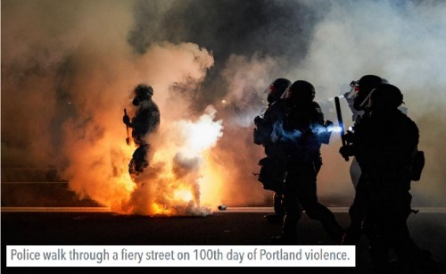 OREGON: Portland – They were throwing rocks and Molotov cocktails. Where is the money coming from the feed, house, and provide these thugs with equipment and weapons for 100 days?!
