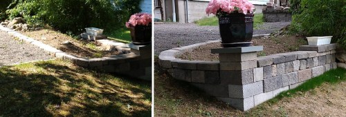 GRAMMY NOTES: Dearest built a retaining wall and planting area this summer. It looks SO CLASSY … especially compared to what was there before!