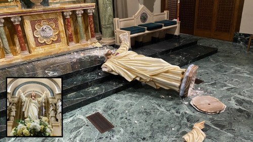 CATHOLIC PERSECUTION: St. Patrick’s Cathedral was vandalized Monday and its cherished, 90-year-old statue of the Sacred Heart of Jesus was destroyed.