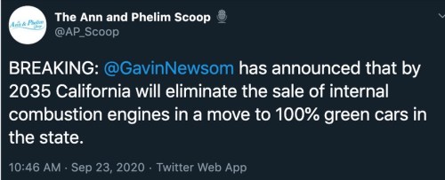 CALIFORNIA: I wonder how they’ll charge them. California isn’t producing enough electricity for its current needs!