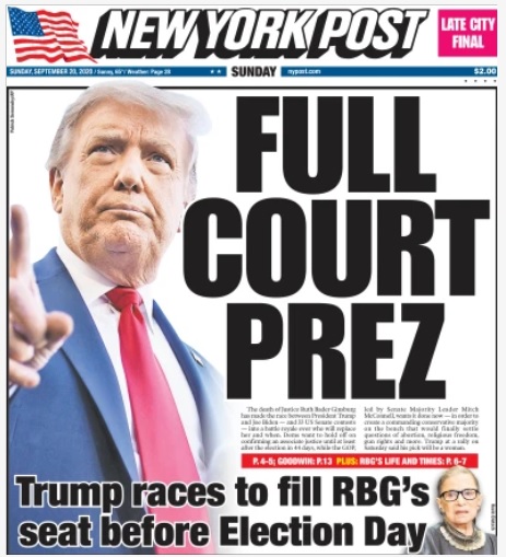 SCOTUS: On Wednesday, President Trump said Republicans must swiftly approve his nominee, because the Democrats’ mass distribution of mail-in ballots means the election will probably be decided by the Supremes.