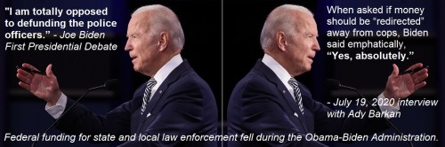 FLIP Then VP-candidate Joe promised 2008 to fully fund the COPS program, but FLOP while he and Obama were in office, their administration slashed COPS funding dramatically … from $1.55 billion to just $222 million.