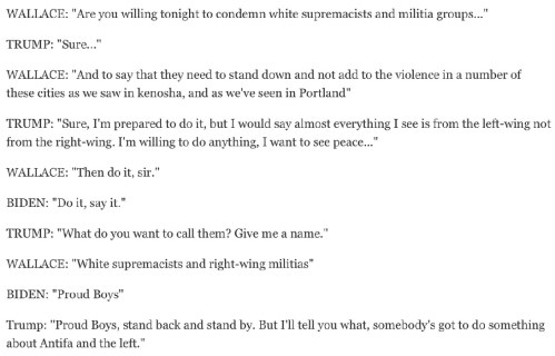 DEBATE: According to the Washington Post, Trump refused to condemn white supremacists and militia members during the presidential debate. The transcript (above) proves their lie.