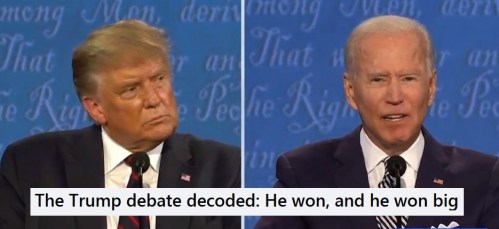2020: Trump won the debate, says Andrea Widburg at American Thinker – “It wasn’t an apparent victory, but it was a real one: He showed his base and ordinary Americans that he will always fight while forcing Biden to disavow both his hard-left base and the last of the old-fashioned Democrats who still support him.”