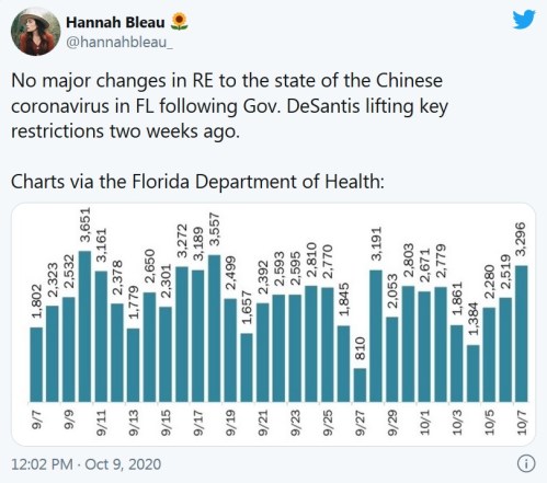 FLORIDA: On Sept. 25, Florida’s Republican Gov. DeSantis allowed Florida businesses to operate at full capacity again. He also announced there would be no enforcement of local mask mandates. There has been no spike in coronavirus cases.