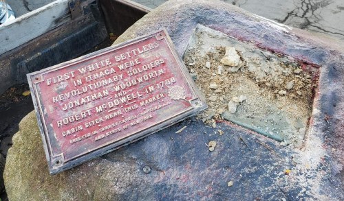 LIBERALS ERASING HISTORY: The First White Settlers monument has been in Dewitt Park, Ithaca, NY, since the 1930s. The socialist flakes on the Ithaca Common Council voted last week to move it … somewhere. The History Center in Tompkins County has it for now.
