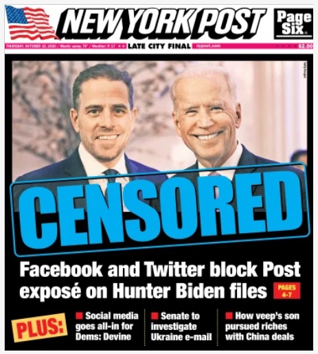 SOCIAL MEDIA MALPRACTICE: Facebook and Twitter blocked anyone from posting/tweeting about the New York Post story about Hunter Biden’s emails. There’s a LOT of stink on the internet about the blocking.
