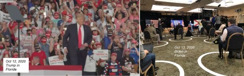 On Tuesday, Joe appeared in Florida where an estimated 60 people attended IRL. But only ten of them were audience. The rest were journalists, Biden staff, and technicians. An additional 1,700 viewers watched via live stream.