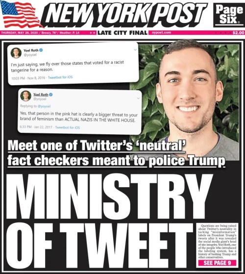 TWITTER: The New York Post reviewed the personal tweets of Twitter’s senior execs and found a litany of venom and vitriol directed at President Trump. Samples include: