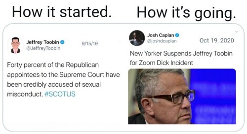 NEW YORKER: There’s a new game on the internet. It’s easy to play. Just find an old New Yorker cartoon and replace the caption with “Jeffrey Toobin took his dick out on a Zoom call.”