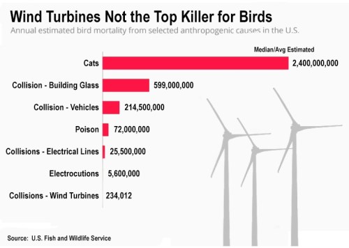 I’m pretty sure that Fluffy and Mittens aren’t murdering any golden eagles, bald eagles, burrowing owls, red-tailed hawks, Swainson’s hawks, American kestrels, white-tailed kites, peregrine falcons, or prairie falcons … to name just some of the species wind turbines are slaughtering.