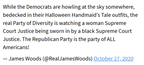 SOUR GRAPES: @HillaryClinton tweet – “It is an insult to the American people that the GOP is ramming through a Supreme Court justice with just eight days until the end of an election in which nearly 60 million people have already voted.” (Oct 26, 2020)