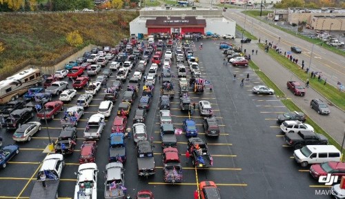 The one in the photo above happened last Saturday, less than two weeks before Election Day. It was planned entirely by local Trumpers, not by the Trump campaign. The caravan of approximately 2,000 cars, many with whole families inside, drove 12 miles honking and waving American and Trump flags.