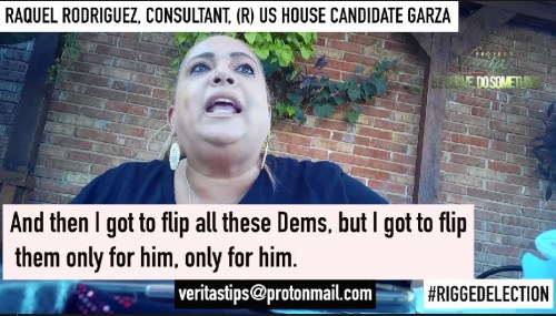 PROJECT VERITAS: Massive voter fraud by operative for Mauro Garza who is running for Congress for Texas-20. In the 17:47 video, Raquel Rodriguez admits repeatedly that she’s breaking the law in multiple ways … while she wears her little gold cross necklace. ::gagme::