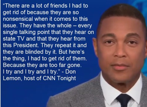 DON LEMON: Liberal Diversity = “I can’t listen to you, because your ideas are stupid and your values are absurd. You must listen to me, because I’m right about everything. Until you admit you’re wrong and I’m right, I cannot be associated with you.”