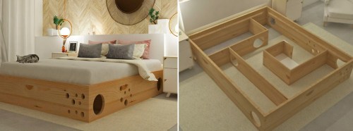 CATS: Catlife.co wrote this about their unique bed design – “With our bed, our cat clients don’t feel invaded in their territory, nor do they have to run looking for a safe space to hide. Under this bed, they find a quiet place, full of calm and security, and best of all, it still has the same functionality for the owner! You will continue to rest as you normally would, but now, you provide a unique den to your cat.”