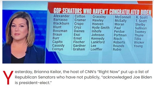 SOCIAL MEDIA: Facebook is “fact checking” most things about election fraud. Some accounts get suspended temporarily or even canceled. If this were going in the other direction, “President-elect” Republican and his illegitimate “transition team” would be the ones getting fact checked 24-7 with helpful links to articles about what the Constitution says about how elections are decided and how it’s not over until it’s over.
