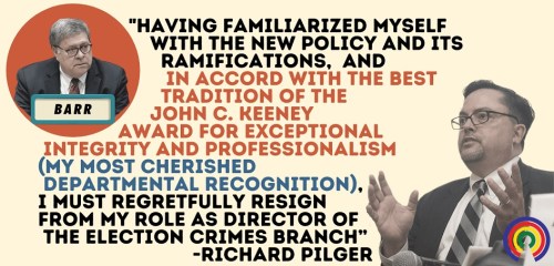 PILGER: Richard Pilger resigned from his position as director of the Election Crimes Branch of the Department of Justice (DOJ) because … wait for it … his boss, U.S. Attorney General William Barr issued a memo directing prosecutors to investigate potential voter fraud.