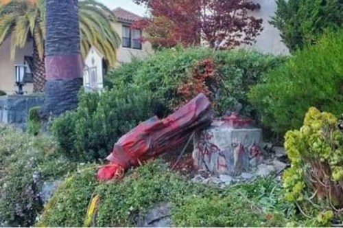 RELIGIOUS PERSECUTION: The Marin County District Attorney filed felony vandalism charges against five people for the defacing and toppling of a statue depicting Saint Junipero Serra at Mission San Rafael in San Rafael, CA.