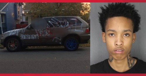 NEW YORK: Buffalo – An 18-year-old Buffalo man has been charged with insurance fraud, offering a false instrument for filing in the second degree, falsifying business records, and falsely reporting an incident. The insurance fraud charge is a felony. He is believed to have spray painted his own car with swastikas, pro-Klu Klux Klan and Donald Trump messages.